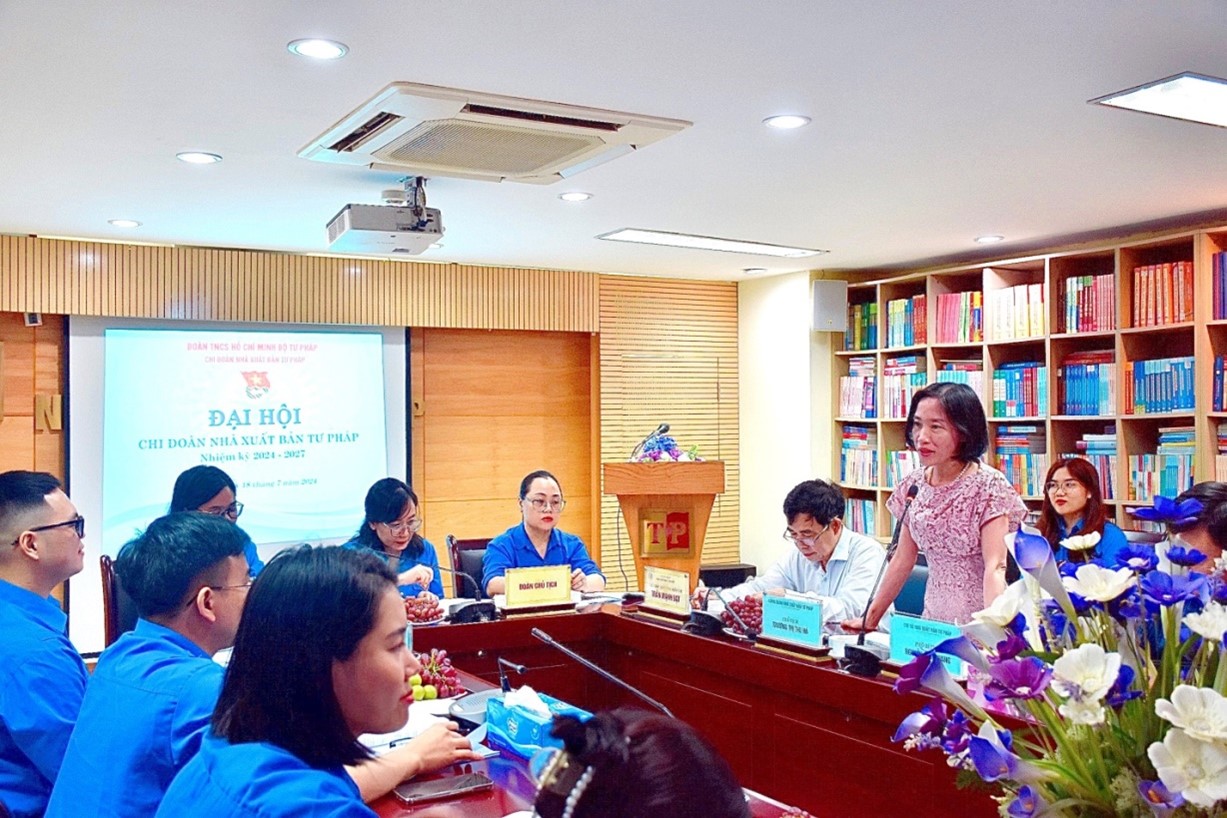Ngày 18/7/2024, Chi đoàn Nhà xuất bản Tư pháp tổ chức Đại hội chi đoàn nhiệm kỳ 2024 - 2027. Tham dự, chỉ đạo Đại hội, về phía Nhà xuất bản Tư pháp có đồng chí Trần Mạnh Đạt - Bí thư Chi bộ, Giám đốc kiêm Tổng biên tập Nhà xuất bản Tư pháp; đồng chí Trương Thị Thu Hà - Phó Giám đốc kiêm Phó Tổng biên tập, Chủ tịch Công đoàn Nhà xuất bản Tư pháp; đồng chí Nguyễn Văn Quang - Phó Bí thư chi bộ, Trưởng Phòng Quản lý Phát hành Nhà xuất bản Tư pháp; về phía Đoàn Thanh niên Bộ Tư pháp có đồng chí Đào Bá Minh - Ủy viên Ban Thường vụ Đoàn Thanh niên Bộ Tư pháp, Phó Cụm trưởng Cụm Thi đua số 3, Bí thư Chi đoàn Viện Chiến lược và Khoa học pháp lý; cùng toàn thể đoàn viên thanh niên Chi đoàn Nhà xuất bản Tư pháp.