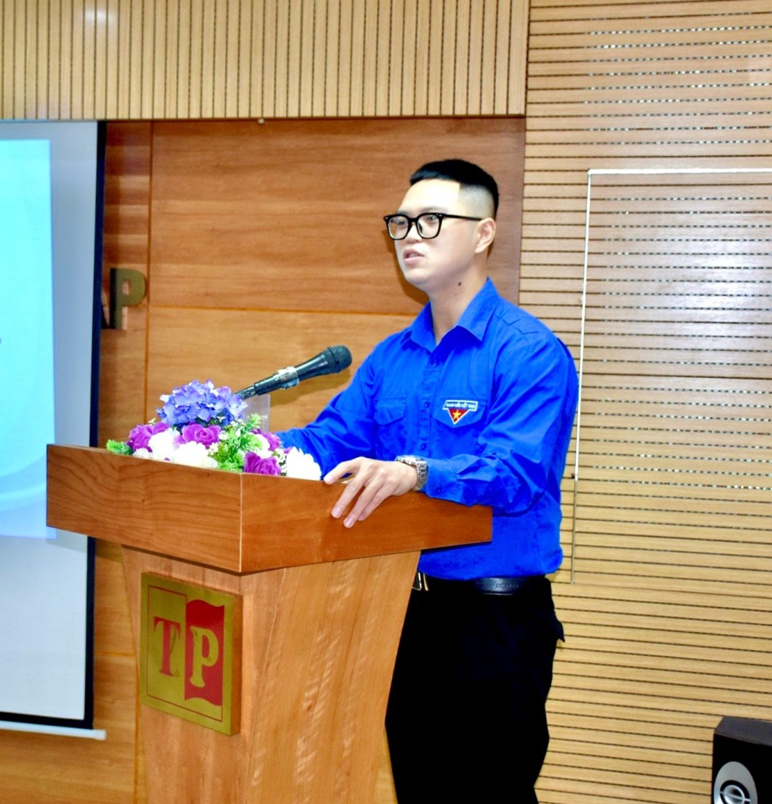 Đồng chí Đào Bá Minh - Ủy viên Ban Thường vụ Đoàn Bộ, Phó Cụm trưởng Cụm Thi đua số 3 Đoàn Bộ, Bí thư Chi đoàn Viện Chiến lược và Khoa học pháp lý phát biểu tại Đại hội